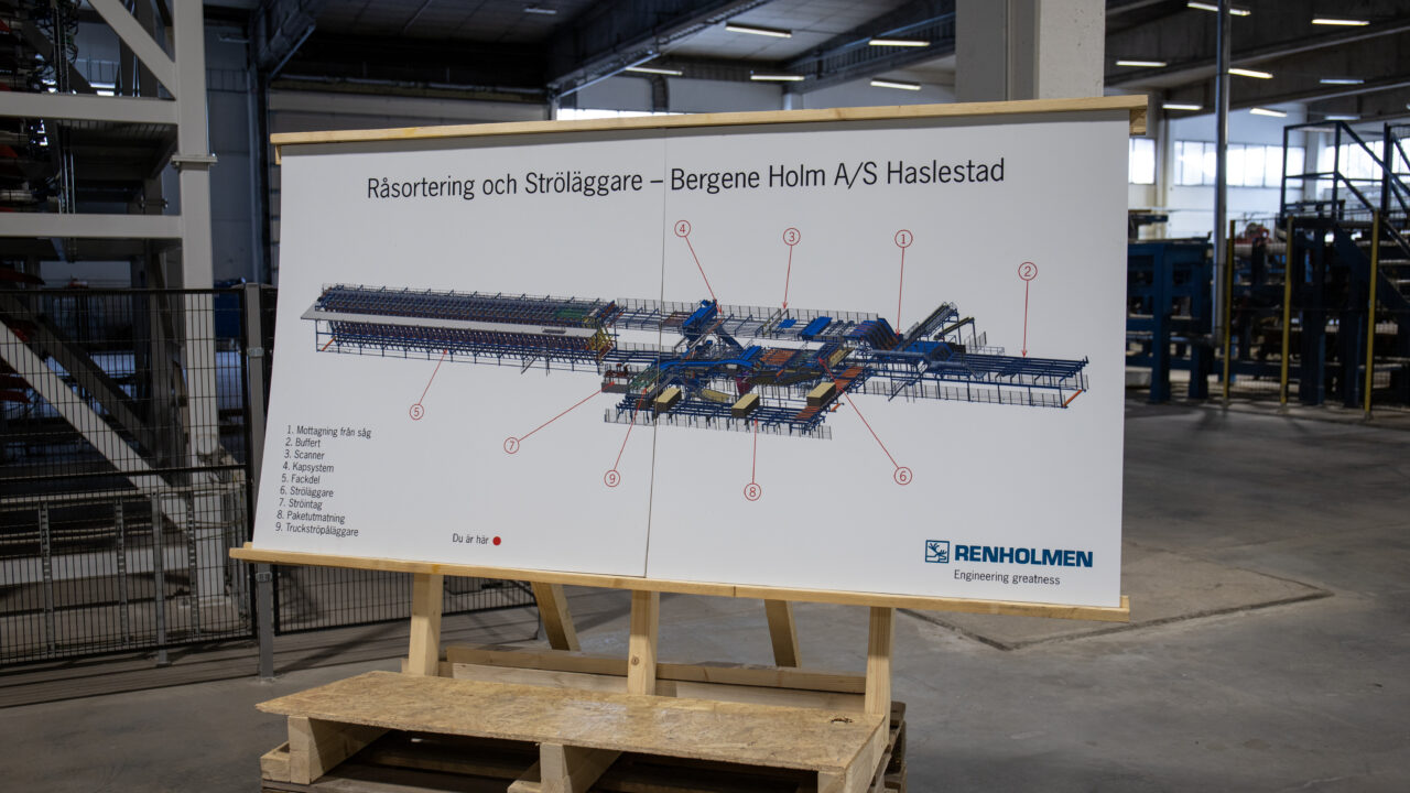 Renholmens lösningar för ströläggning och råsortering på Bergene Holms sågverk i Haslestad i södra Norge har nu invigts med pompa och ståt – två gånger!